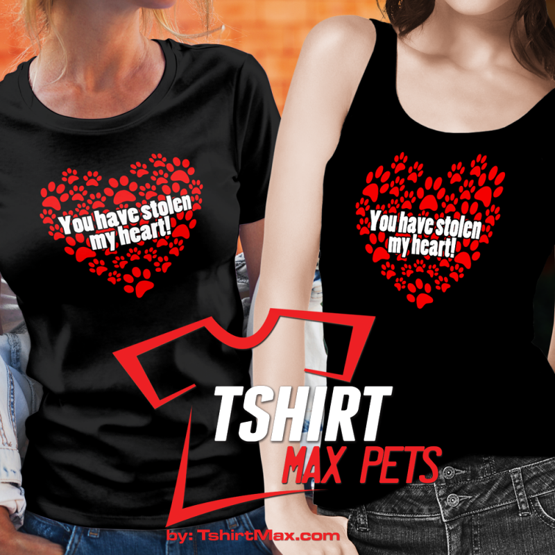 "You Have Stolen My Heart" " diseño original en Rojo y Negro/Blanco - Tshirt Negra Next Level 60% / 40% para Chicas y Tshirt marca Jerzees/Gildan para Chicos material 50% algodón y 50% polyester. Ojo CHICAS: las Next Level corren ajustadas.. si quieres que te queden sueltas te recomendamos una talla más.