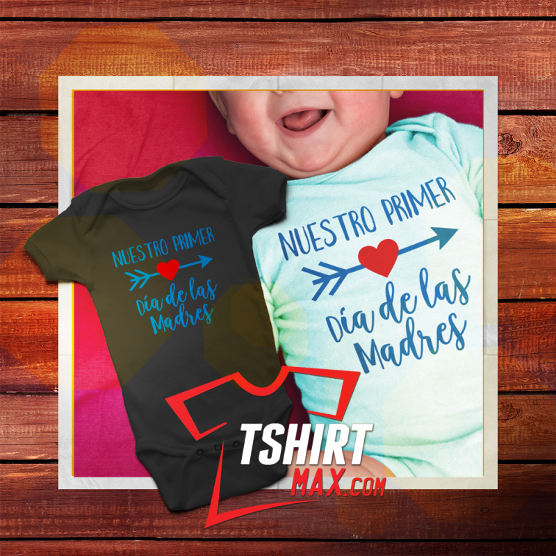 "Nuestro Primer Día De Las Madres V3" diseño original en Sky Blue/Rojo. Bodysuit Blanca ó Negra 100% Algodón - Tamaños Disponibles: NewBorn, 6 meses, 12 meses, 18 meses, 24 meses, camisitas 2T ó 3T y también puede escoger en tshirts de niños.