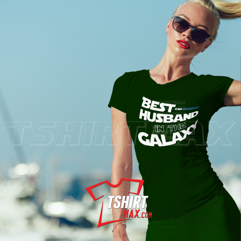 "Best Husband In The Galaxy" diseño original en Amarillo y Azul Cielo.  Tshirt Clásicas marca Jerzees ó Gildan (la que esté disponible en el momento) Estas camisetas son de corte clásico regular unisex y estas corren normales. Tshirt corte de Damas marca Gildan 5000L corren normales.