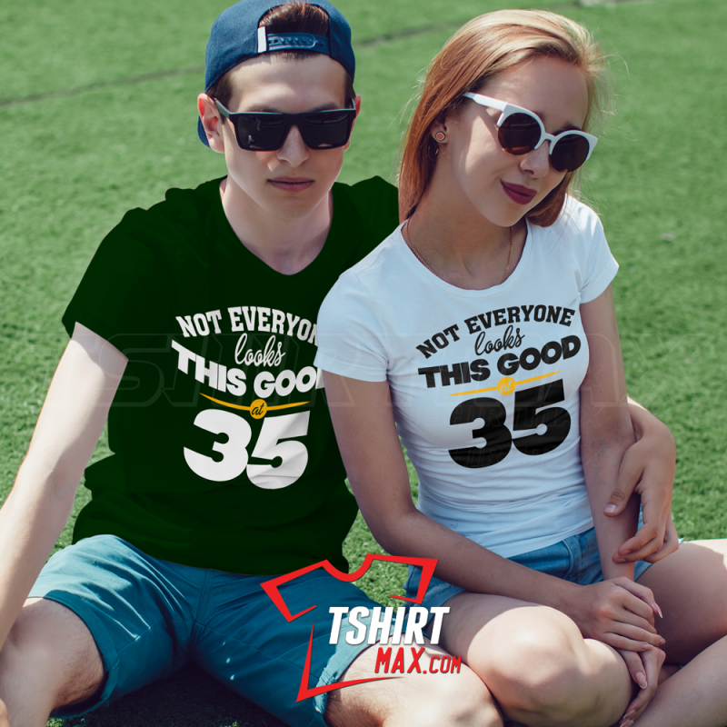 "Not Everyone Looks This Good At (Edad)" diseño original en Blanco/Negro y Amarillo - Tshirt Negra/Blanca Next Level 60% / 40% para Chicas y Tshirt marca Jerzees/Gildan para Chicos material 50% algodón y 50% polyester. Ojo CHICAS: las Next Level corren ajustadas.. si quieres que te queden sueltas te recomendamos una talla más.