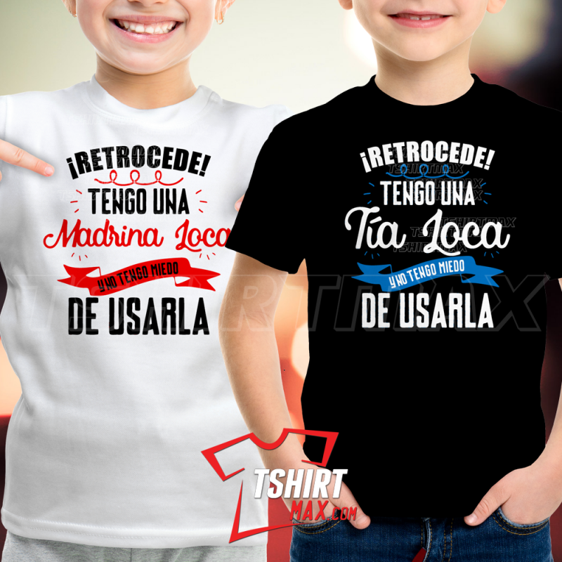 "Retrocede Tengo Una Tia (Otros Parentezcos) Loca y No Tengo Miedo De Usarla" diseño original en Blanco/Negro, Rojo/Azul Cielo - Tshirt Negra marca Jerzees Unisex material 50% algodón y 50% polyester (Estas corren normales) y Kimonos 100% Algodón.