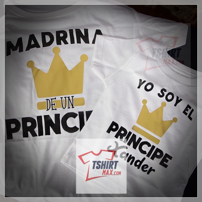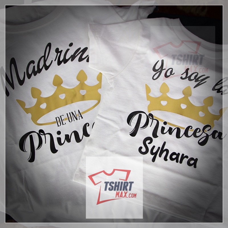"Yo Sol La Princesa (Principe) - Madrina, Padrino, Etc etc de un...!" diseño original en Blanco/Negro y Oro - Tshirt Negra/Blanca marca Jerzees Unisex material 50% algodón y 50% polyester (Estas corren normales).