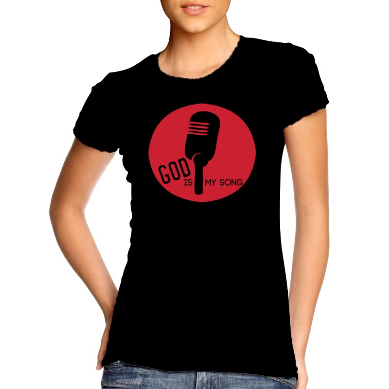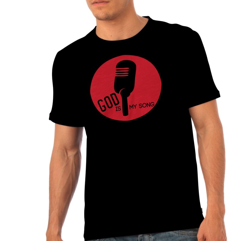 "God Is My Song" diseño original en Negro - Tshirt Negra Next Level 60% / 40% para Chicas y Tshirt marca Jerzees/Gildan para Chicos material 50% algodón y 50% poliester. Ojo CHICAS: las Next Level corren ajustadas.. si quieres que te queden sueltas te recomendamos una talla más.