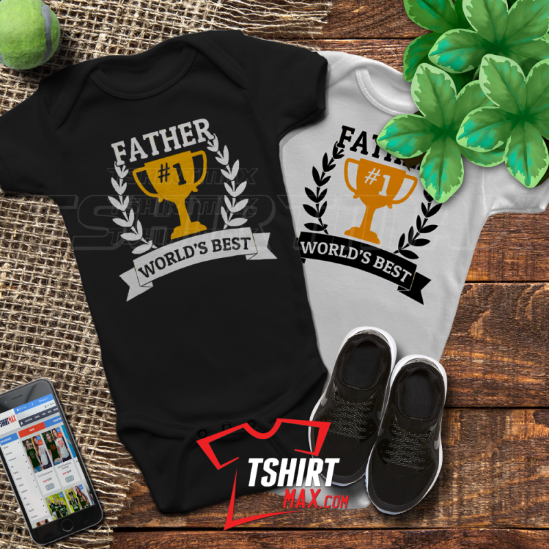 "Father's 1st World Best" diseño original en Blanco/Negro y Amarillo. Bodysuit Blanca ó Negra 100% Algodón - Tamaños Disponibles: NewBorn, 6 meses, 12 meses, 18 meses, 24 meses, camisitas 2T ó 3T y también puede escoger en tshirts de niños.