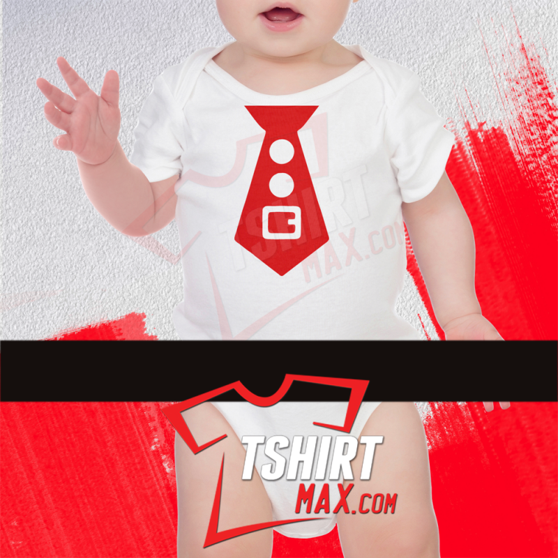 "Corbata Roja" diseño original en Rojo y Verde. Bodysuit Blanca 100% Algodón - Tamaños Disponibles: NewBorn, 6 meses, 12 meses, 18 meses, 24 meses, 2T, 3T