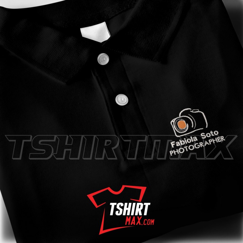 "Photographer Bordada Personalizada V1" - Utiliza nuestro logo en Polos Unisex 50 algodón 50% Polyester, ó Microfibra Unisex 100% Polyester personalizadas