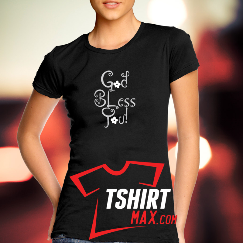 "God Bless Your" diseño original en Plateado y Blanco - Tshirt Negra Next Level 60% / 40% para Chicas Ojo CHICAS: las Next Level corren ajustadas.. si quieres que te queden sueltas te recomendamos una talla más.