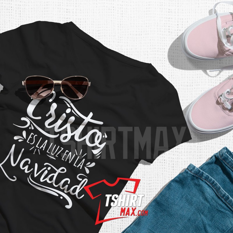 "Cristo Es La Luz En La Navidad " diseño original en Negro ó Blanco- Tshirt Negra/Blanca Next Level 60% / 40% para Chicas y Tshirt marca Jerzees/Gildan para Chicos material 50% algodón y 50% polyester. Ojo CHICAS: las Next Level corren ajustadas en area de busto y costado..recomendamos una talla más.