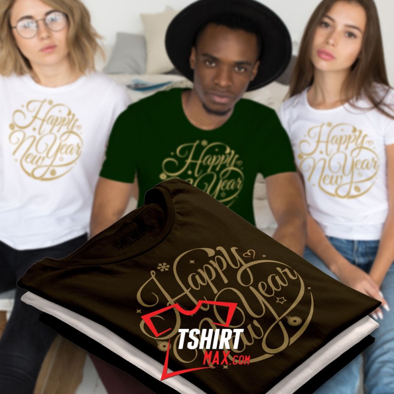"HAPPY NEW YEAR V4" Diseño original en Blanco/Negro, Amarillo y Rojo. - Tshirt Negra para chicas Next Level 60% / 40% para Chicas y Tshirt marca Jerzees/Gildan para Chicos material 50% algodón y 50% polyester. Ojo CHICAS: las Next Level corren ajustadas.. si quieres que te queden sueltas te recomendamos una talla más.