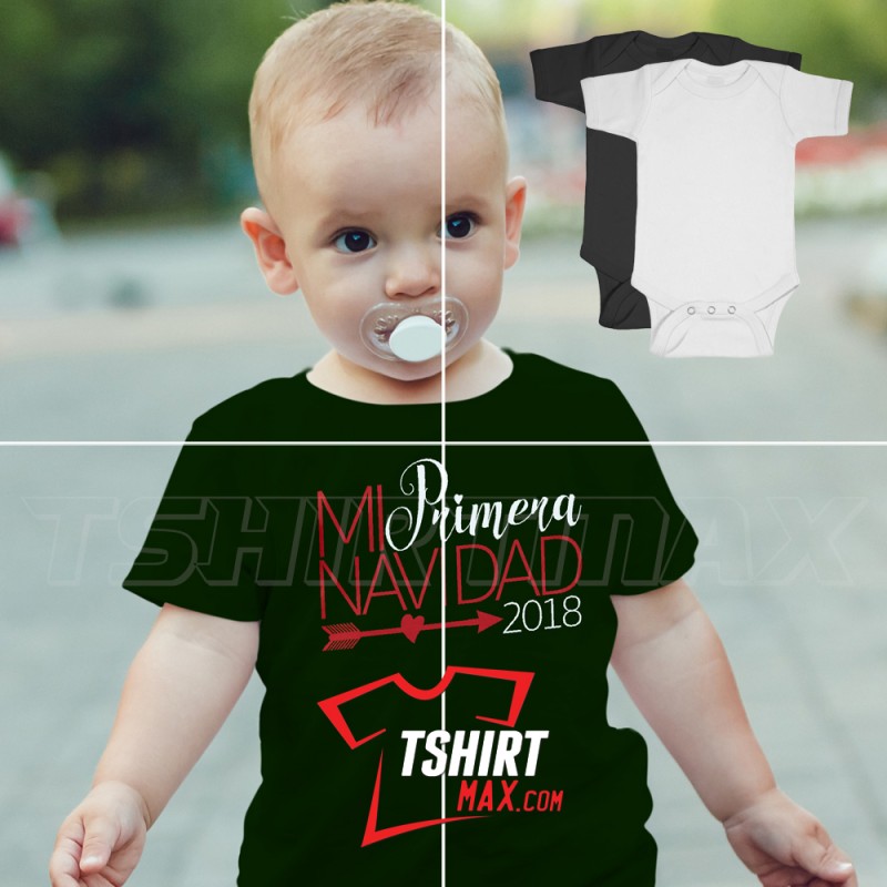 "Mi Primera Navidad V4" diseño original en Rojo y Verde. Bodysuit Blanca/Negra 100% Algodón - Tamaños Disponibles: NewBorn, 6 meses, 12 meses, 18 meses, 24 meses, 2T, 3T
