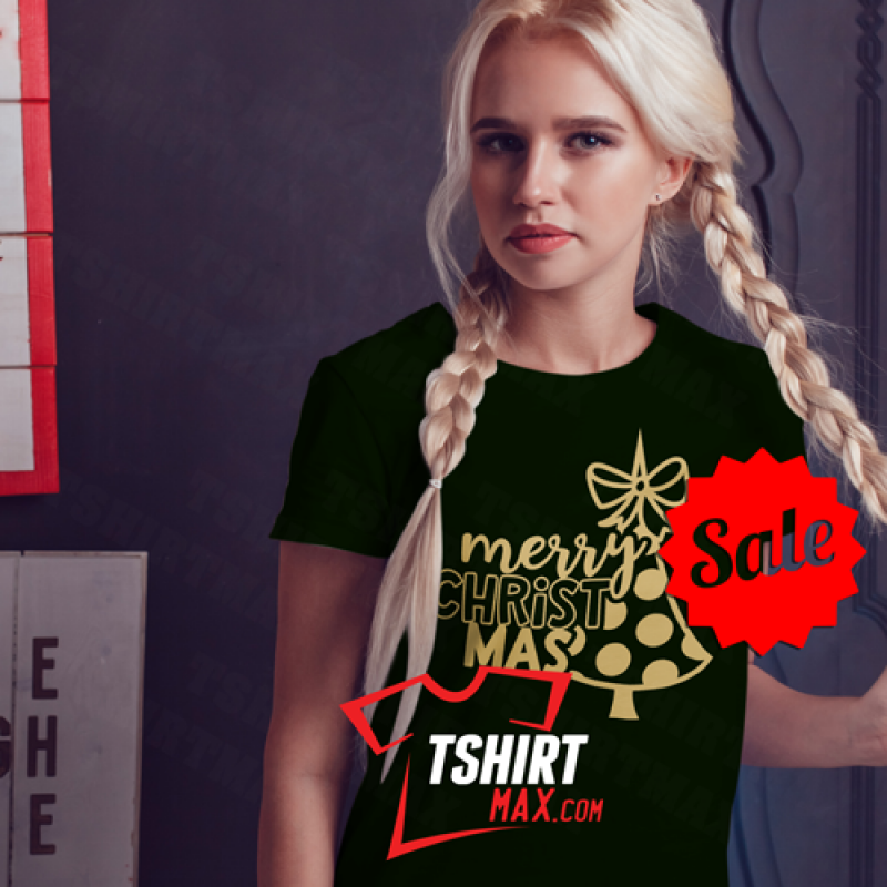 "Merry Christmas V3" diseño original en color oro - Tshirt Negra/Blanca Next Level 60% / 40% para Chicas y Tshirt marca Jerzees/Gildan para Chicos material 50% algodón y 50% polyester. Ojo CHICAS: las Next Level corren ajustadas en area de busto y costado..recomendamos una talla más.