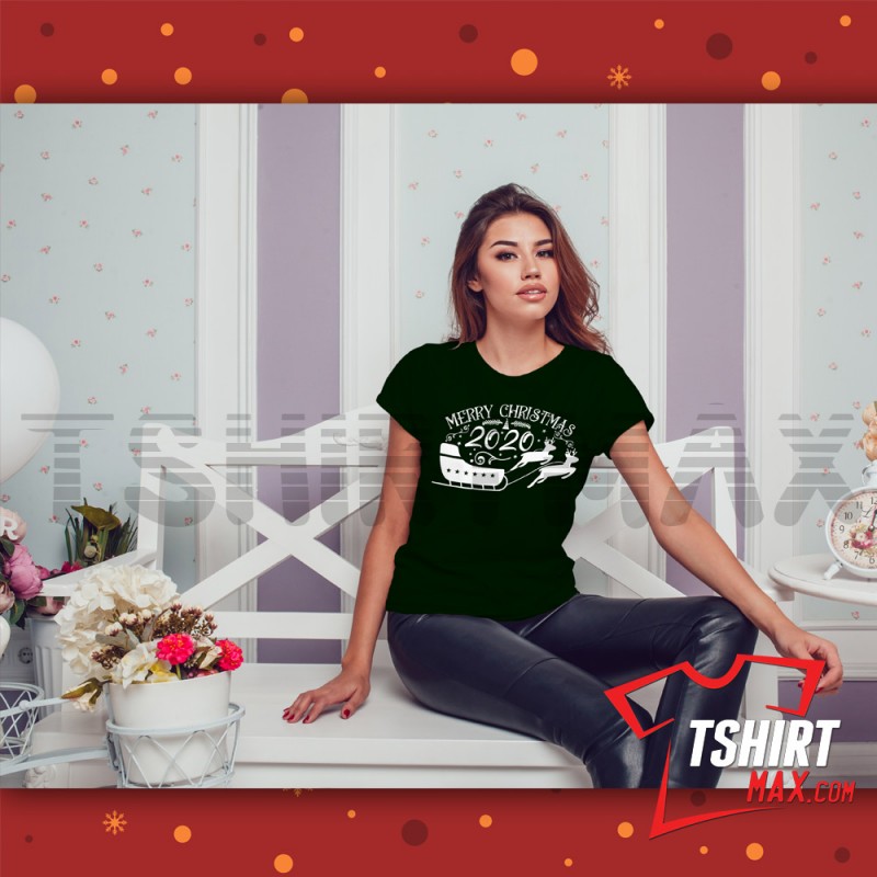 "Merry Christmas 2020 Trineo" diseño original en color blanco o negro - Tshirt Negra/Blanca Next Level 60% / 40% para Chicas y Tshirt marca Jerzees/Gildan para Chicos material 50% algodón y 50% polyester. Ojo CHICAS: las Next Level corren ajustadas en area de busto y costado..recomendamos una talla más.