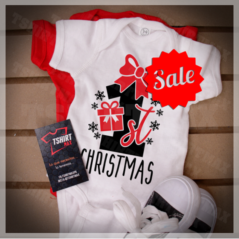 "My 1st Christmas V4" diseño original en Rojo y Blanco/Negro. Bodysuit Blanca/Negra 100% Algodón - Tamaños Disponibles: NewBorn, 6 meses, 12 meses, 18 meses, 24 meses, 2T, 3T