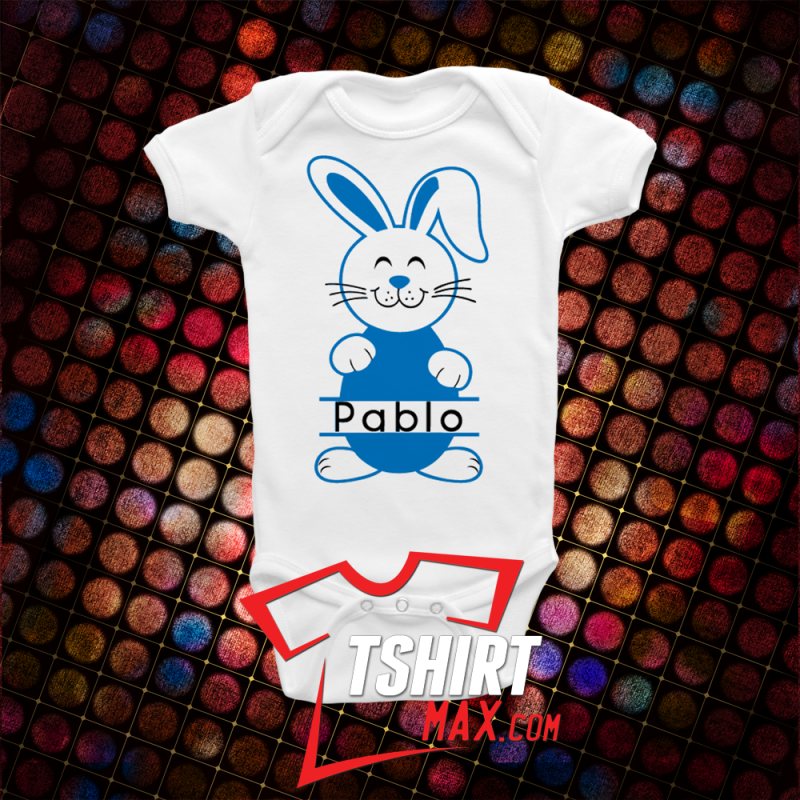 "Conejito Parado Personalizado" diseño original en Amarillo/Azul Cielo. Bodysuit Blanca 100% Algodón - Tamaños Disponibles: NewBorn, 6 meses, 12 meses, 18 meses, 24 meses, 2T, etc.